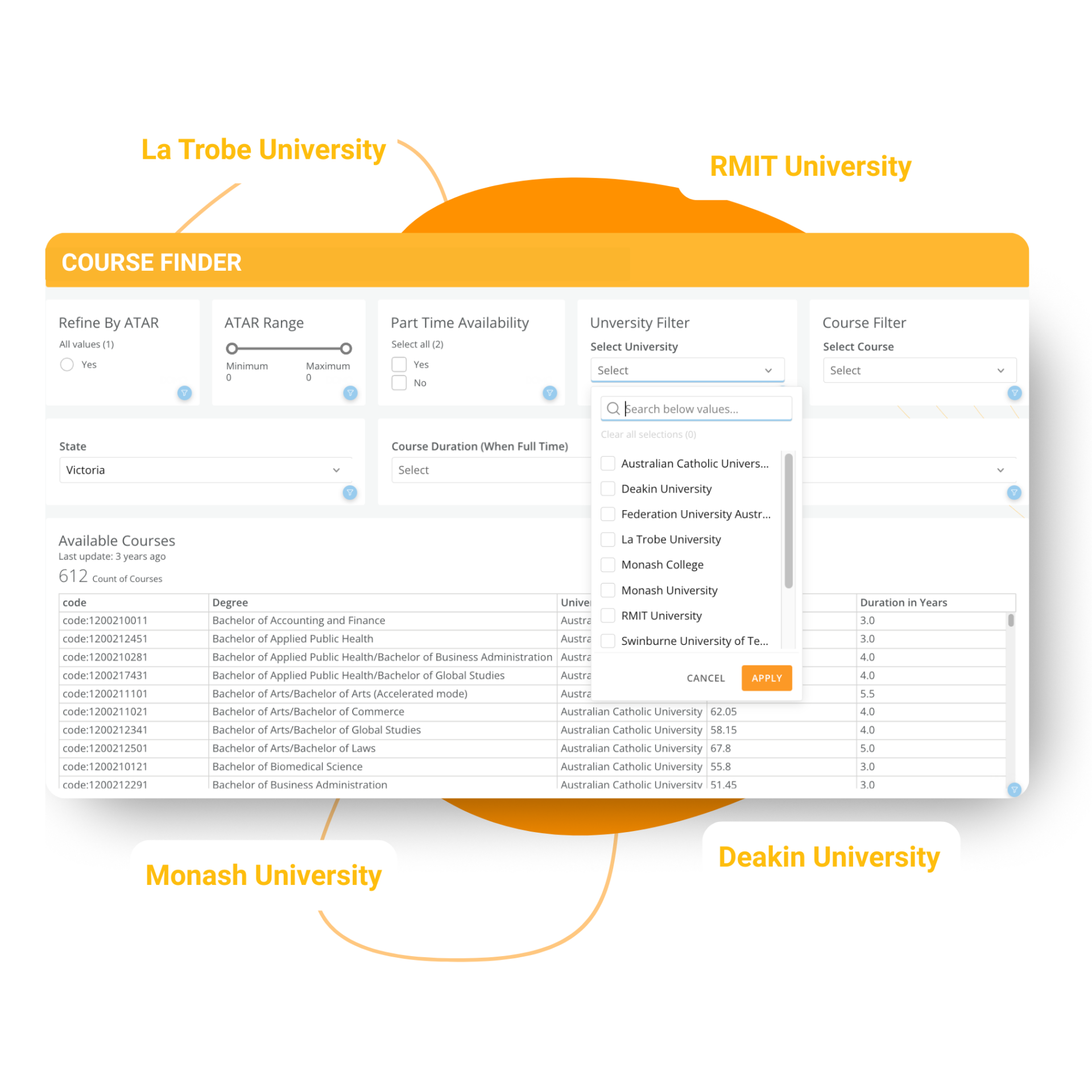 Visualising potential pathways to universities, TAFEs, and vocational programs based on real-time data.