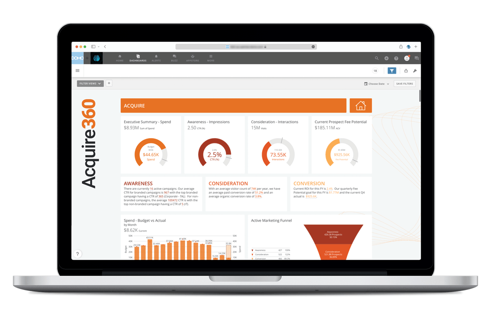 Offline (print, radio and television) marketing is traditionally expensive and difficult to measure effectiveness. Blending your offline marketing activity and spend with ‘signals’ from your online social and website data in Acquire360 can begin to surface valuable correlations, helping you gain a greater understanding of the impact of your offline investments.