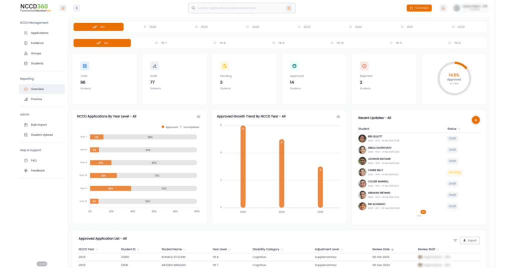 From the overview screen, easily visualise NCCD Application Statuses, Latest Updates, Trend Data and other key metrics.