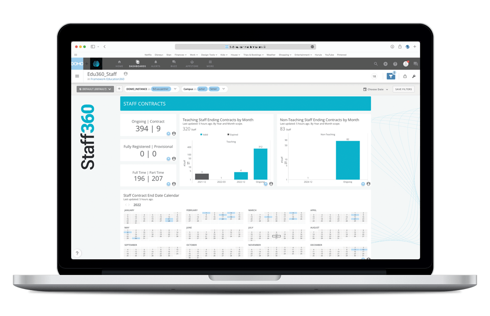 With your staff data cleansed and unified from across your school, surface insights through powerful visualisations, analytics and alerts. With our Staff360 dashboards and visualisations, you will have a clear view of all of your most important metrics on a single page. Track your staff related costs, training and compliance requirements, leave planning and trends and more. Get alerted when expenses cross a threshold or training and compliance targets are missed.